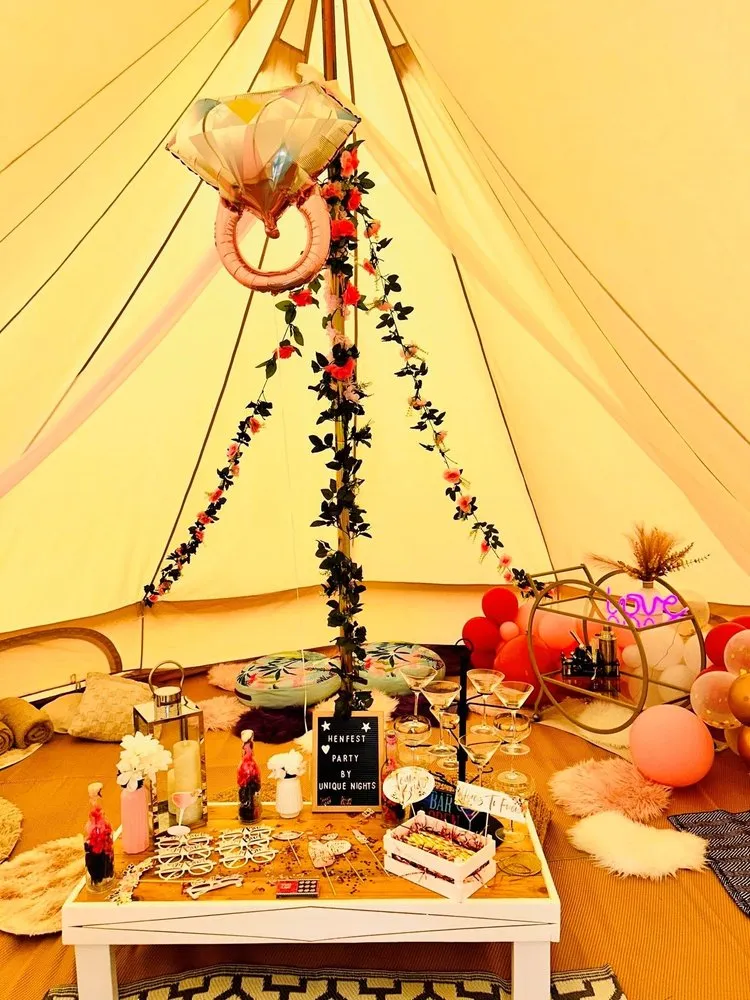 SarahWendover"The bell tent party for my daughter's 17th birthday was an absolute triumph! The team handled everything with such professionalism, from the stunning tent setup to the atmospheric lighting that created the perfect ambience as evening fell. The comfortable seating arrangements meant everyone could relax and enjoy themselves properly. Even better, we were able to host this and have the set up and put down done by the Chiltern Team, which made the whole experience completely stress-free. Our teenagers were utterly thrilled with the unique setting—it was sophisticated yet fun, and provided the perfect backdrop for countless photos and memories. The attention to detail truly elevated what could have been a standard birthday into something extraordinary. My daughter felt completely special on her day, and her friends haven't stopped talking about it. I couldn't recommend this service highly enough for anyone wanting to create a magical celebration in the comfort of their own home without any of the hassle."